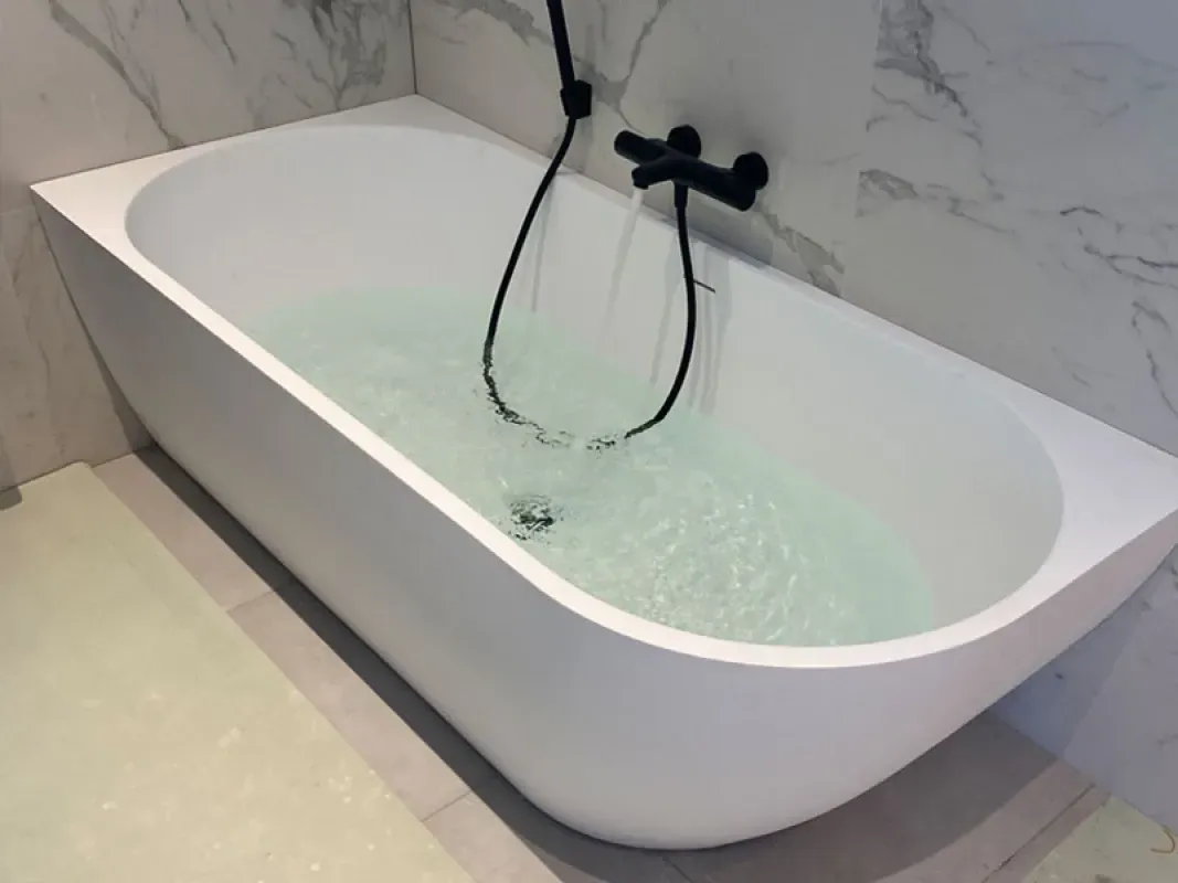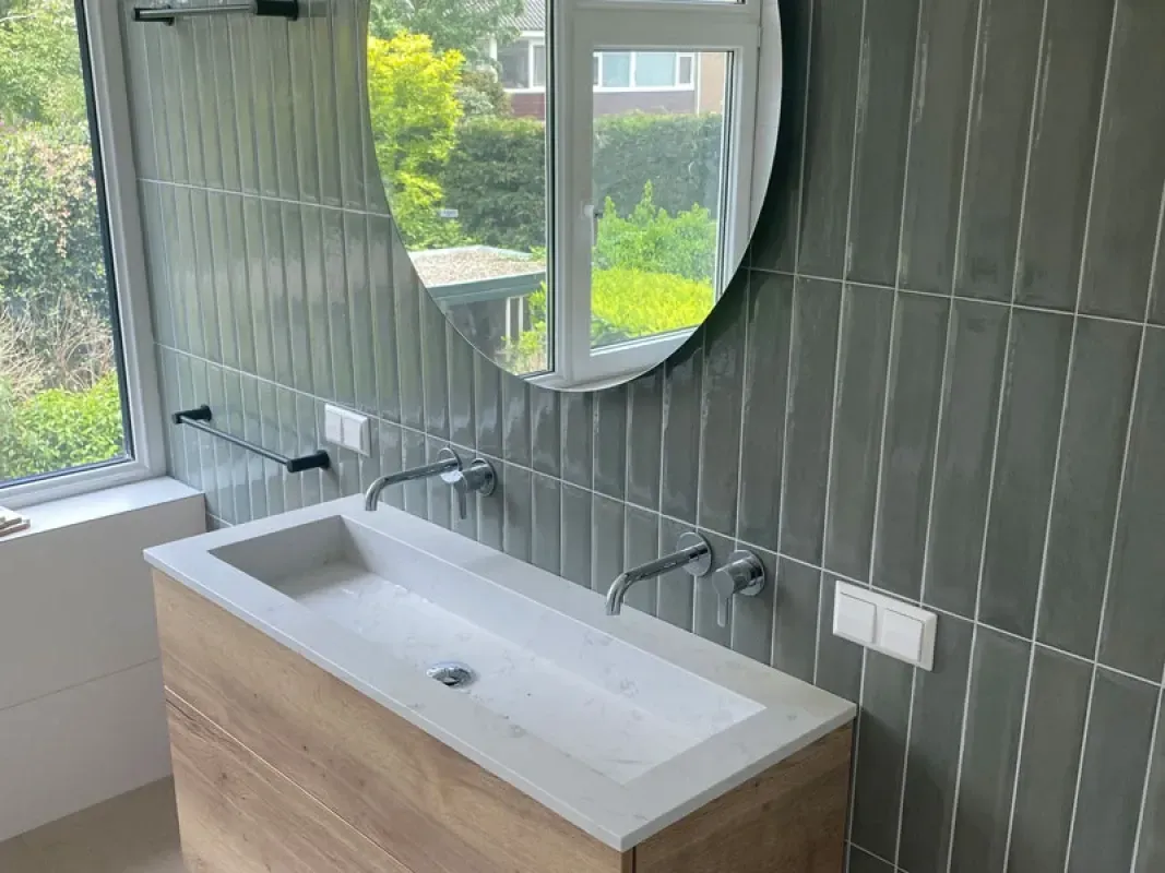 Voor deze woning aan de Offenbachstraat in Alkmaar hebben we de badkamer volledig vernieuwd. Van nieuw leidingwerk tot de laatste afwerking, alles is zorgvuldig en strak uitgevoerd. Het resultaat? Een stijlvolle, moderne badkamer met een luxe badkuip, waar comfort en design samenkomen.